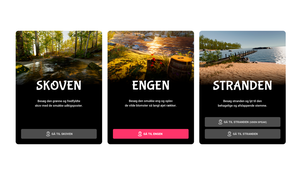In the VR-universe the birthing woman would be shielded from the outside world and surrounded by a virtual world in which one could move around and explore with a 360-degree view. There were developed three virtual environments: the woods, the beach and the meadow, which were intended to be calm and soothing.